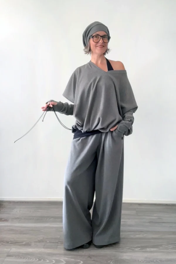 Gemaakt van dezelfde geribbelde stretchstof als ons nieuwe asymmetrische vest!De grijze tops met 3/4 mouw zijn op voorraad!