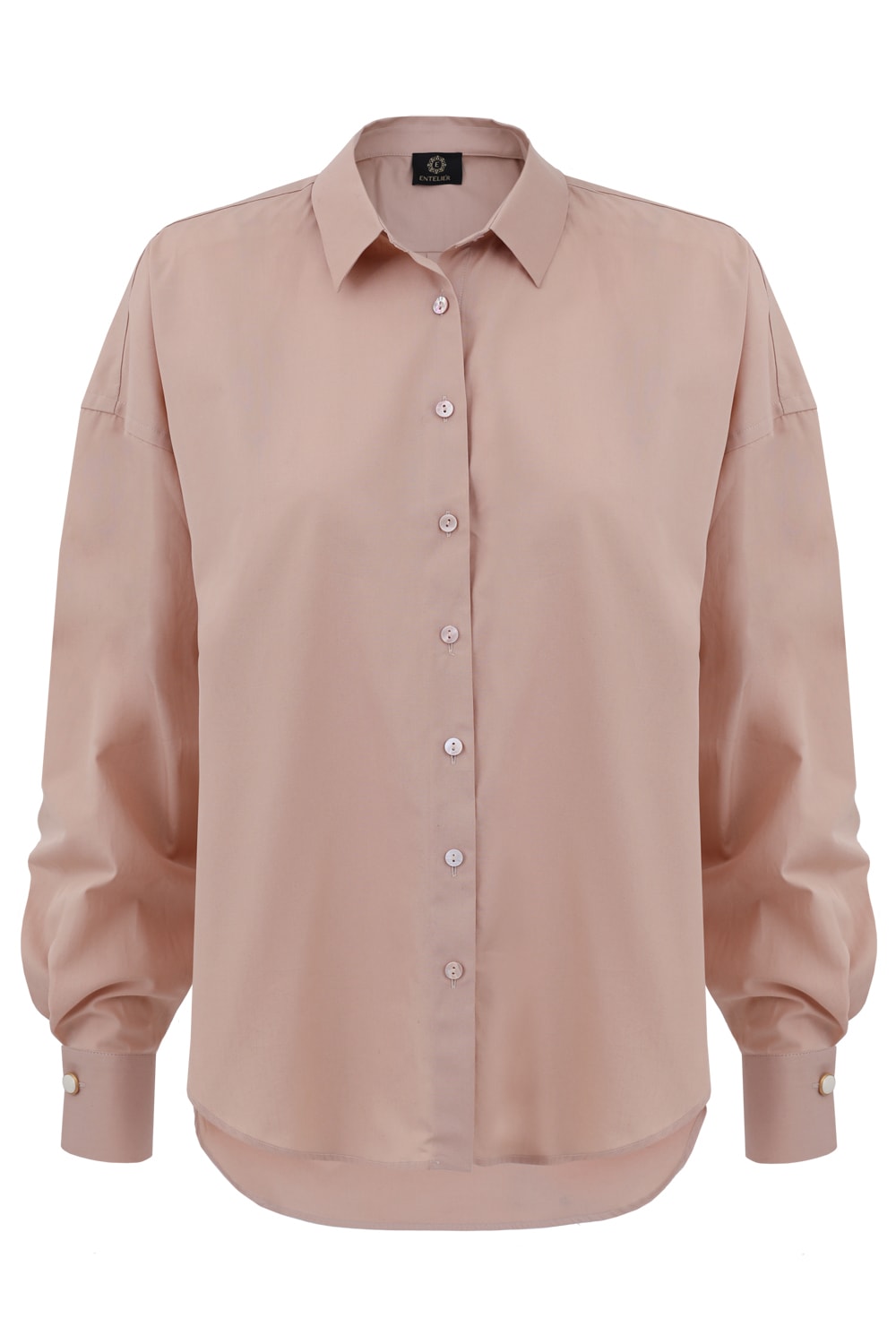 Classic beige oversize shirt is a loose, yet elegant shirt. The inspiration for the creation of the shirt was the style of Parisian women and the shirt from the men's wardrobe. The characteristics of the shirt are: classic, slightly stiffened collar large, stiffened cuffs fastened with one decorative golden button.