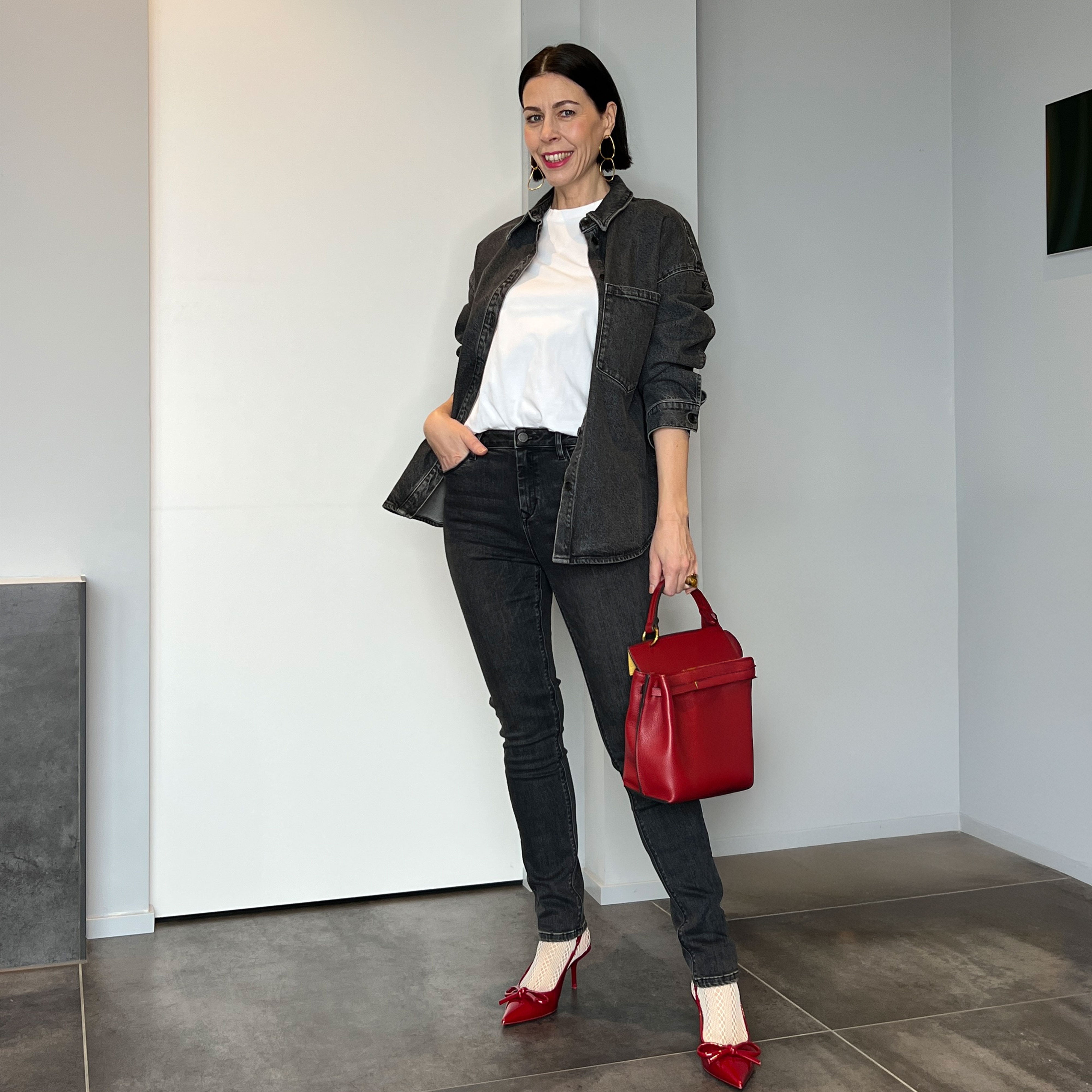 Our model Jessica is 1,75 m tall and wears size 27/30.