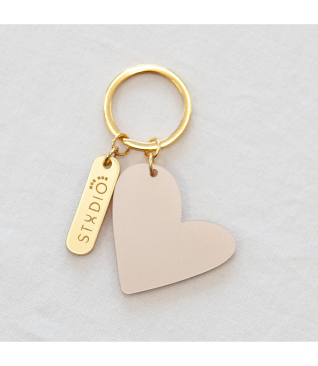 Sleutelhanger van een roze hartje gemaakt van 100 % recycled acryl