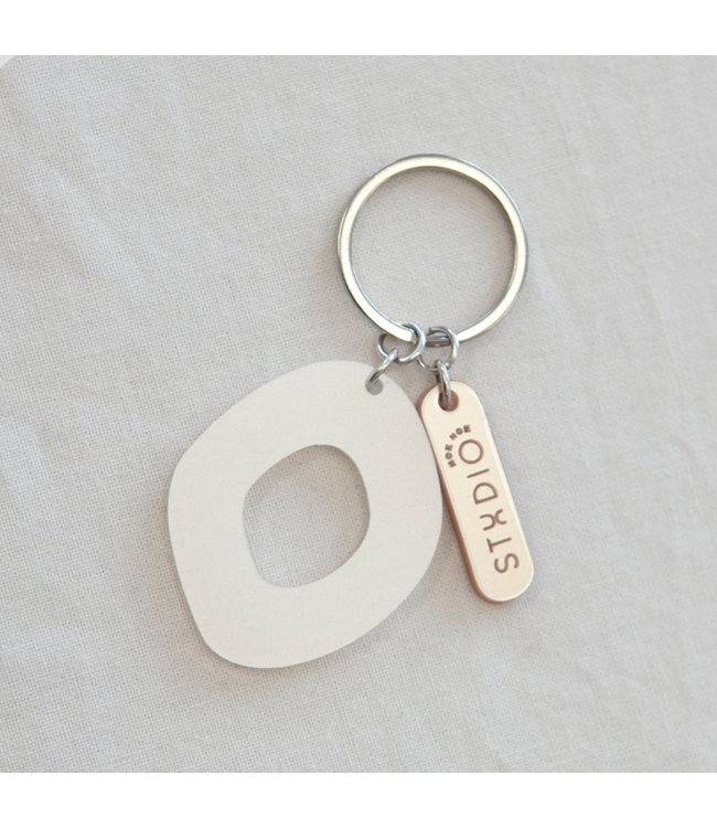 Sleutelhanger van een wit figuur gemaakt van 100 % recycled acryl