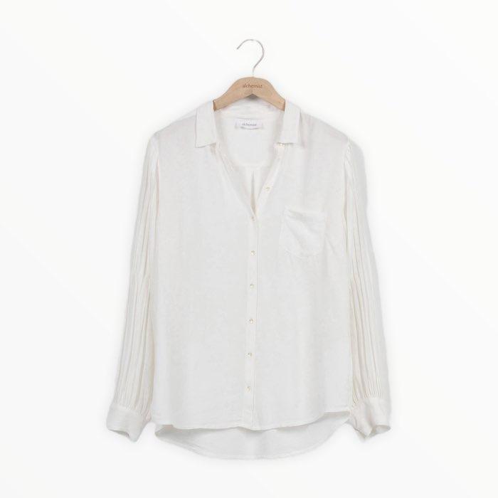 Blouse Taffy van Alchemist heeft een rechte pasvorm en heeft prachtige klokkende mouwen. De off white blouse heeft een knoopsluiting op de voorkant en knoopjes op de manchetten. Mooi om ze te dragen en staat ook super onder een spencer.