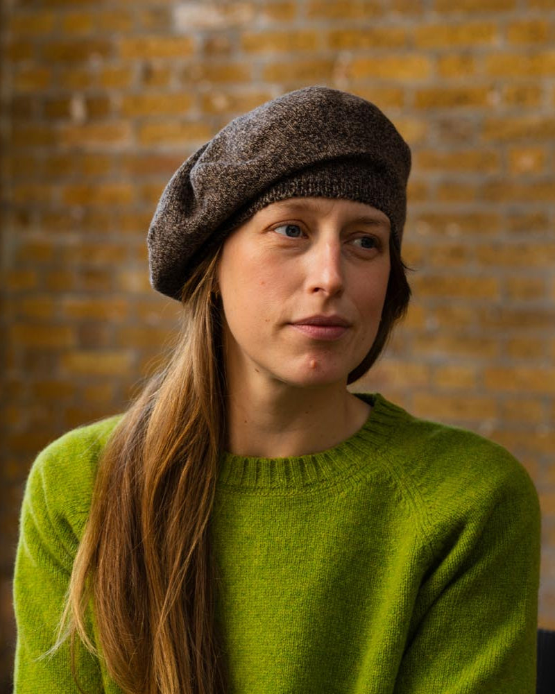 Our marl beret is a lightweight alternative to a beanie, the fine merino and loose style mean that this hat won't flatten your hair, but will keep you just as warm on a winters day. Knitted in fine, soft, breathable merino lambswool. It is perfect for a special occasion or everyday wear and the seamless construction provides a comfortable fit.