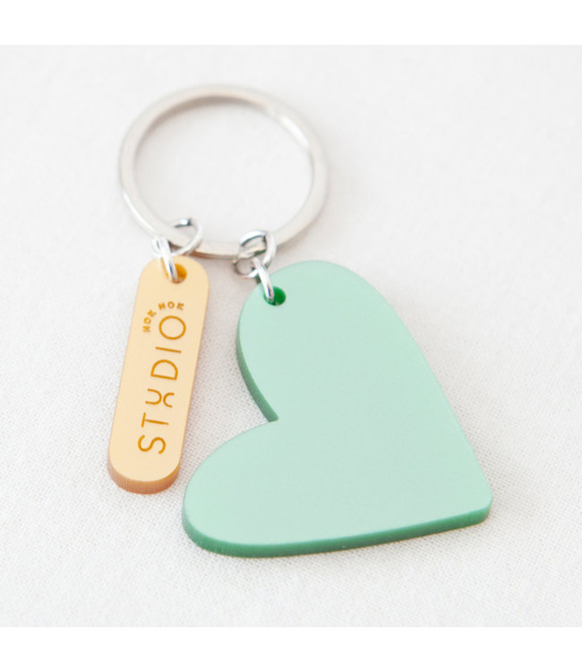 Sleutelhanger van een groen hartje gemaakt van 100 % recycled acryl