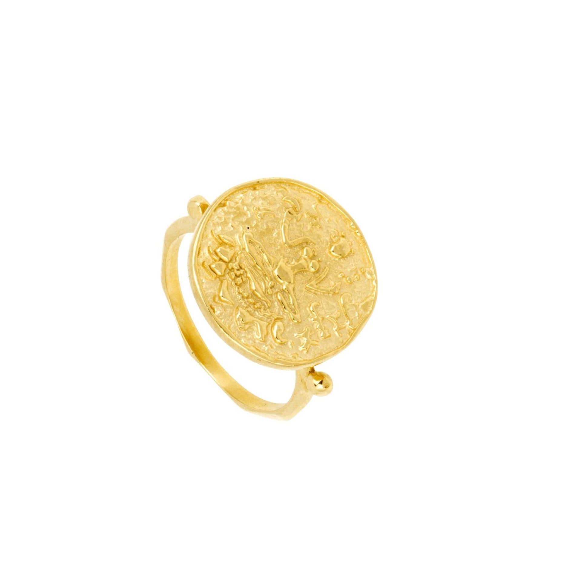 Lakshmi, the radiant goddess of wealth & prosperity, provider of spiritual & material abundance, protector of ill health & adversity, is celebrated in this antique-inspired coin ring.