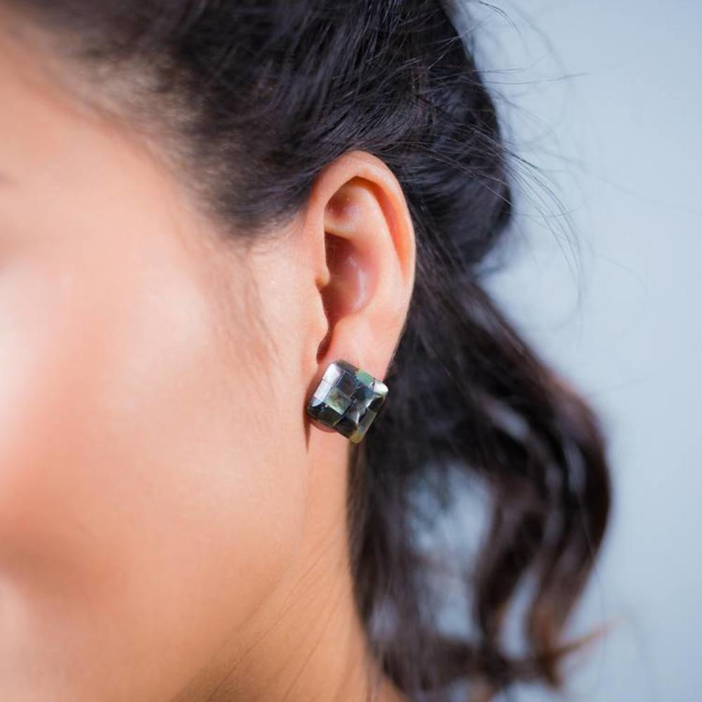 Deze oorbellen zijn gemaakt van parelmoer.