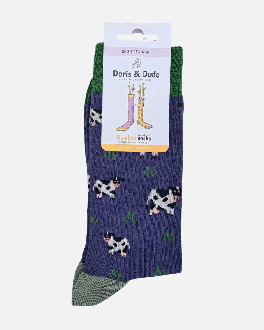 Doris & Dude bamboe damessokken koeien paars from Lotika
