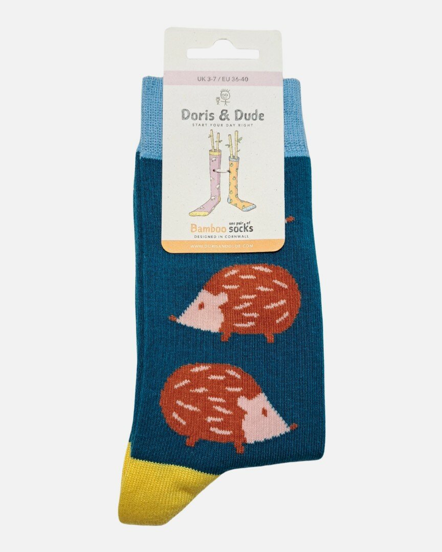 Doris & Dude bamboe damessokken met egels teal from Lotika