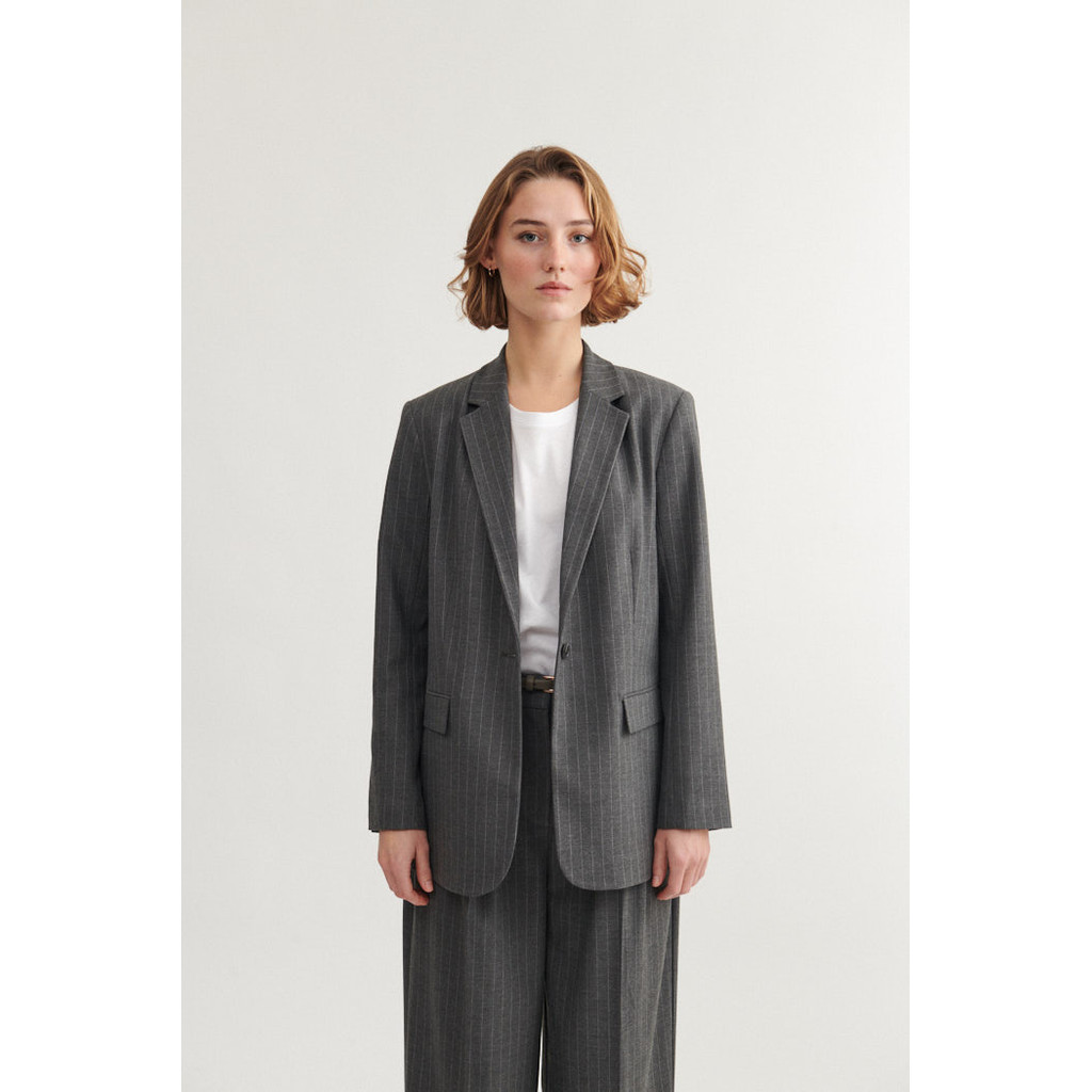 Blazer met krijstreep. Prachtig om als pak te combineren met bijbehorende pantalon in dezelfde kleur. Op een jeans kan eveneens.